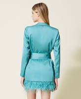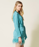 - 100% viscose. Lining: 100% polyester. Belt: 100% viscose. Material 2: 100% polyester