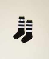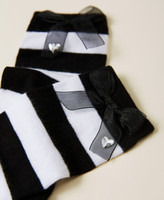 Striped socks with organza bow and Oval T logo detail with rhinestones.