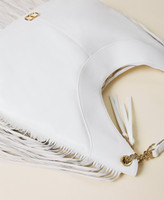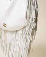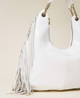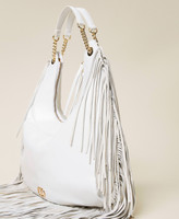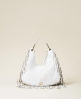 'Agápi’ hobo bag made from full grain Italian calf leather with suede fringes, double chain handle with shoulder pad. Twinset brings its message of kindness and welcome in all languages of the world: 'Agápi' means 'love' in Greek.