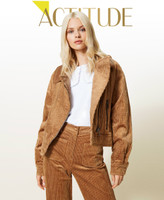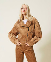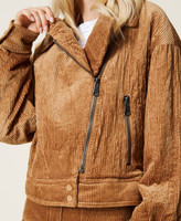 Actitude collection wide fit corduroy biker jacket, lightly padded, with metal zip, loose sleeves, buttons at the hem.