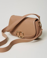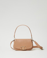 Brera' shoulder bag made from smooth faux calf leather with flap and galvanized brushed gold-tone Oval T fastener. Handle for on-shoulder or hand carrying and cross-body strap, both removable with carabiners, lining.