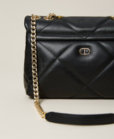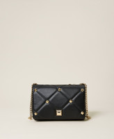 'Cara’ shoulder bag made of full grain Italian calfskin, matte with diamond quilting and pyramid studs. Twinset brings its message of kindness and welcome in all languages of the world: 'Cara' means 'darling' in Italian.