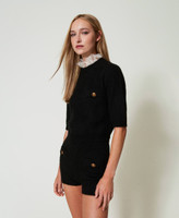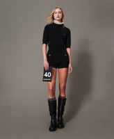 Emily' mohair blend knit shorts made in Italy. Ribbed elasticated waist, fake front pocket with metal button, fitted cut.