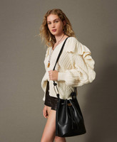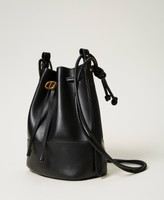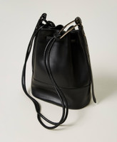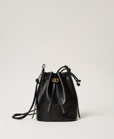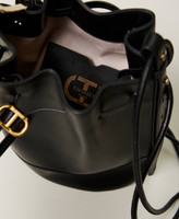 Jane' leather bucket bag made in Italy from Italian smooth full grain calf leather. Drawstring closure with metal Oval T logo adjuster, double tubular strap attached with irregular rings with logo, suitable for on-shoulder or cross-body wear, lining.