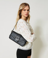 ‘Amie’ smooth calf leather horizontal shoulder bag with tonal enamelled Oval T logo, flap and magnet closure. Twinset brings its message of kindness and welcome in all languages of the world: 'Amie' means 'girlfriend' in French.
