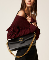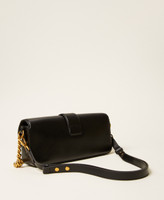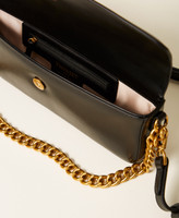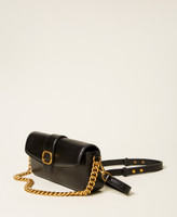‘Amie’ shoulder bag with horizontal construction, made from smooth calf leather. Flap and magnet closure, lining, double shoulder strap: one made of leather that can be adjusted with snap buttons, the other a satin gold-tone metal chain strap.