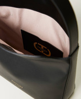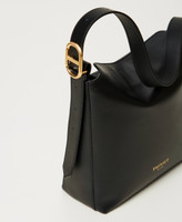 ‘Jolie‘ hobo bag made in Italy from smooth full grain calf leather customised with gold foil heat-printed logo. Overlapping closure with magnet, adjustable shoulder strap with satin gold-toned Oval T logo buckle.