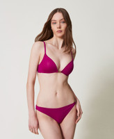 Solid colour asymmetrical bikini briefs with Oval T on the side. Lined.
