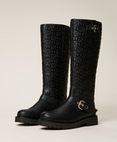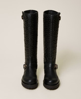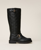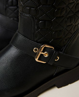 Biker boots with Oval T logo print, straps with buckles, rubber sole.