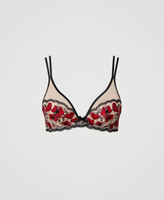 Tulle bralette with poppy embroidery, non-padded, with triangle cups, underwire, side stays.