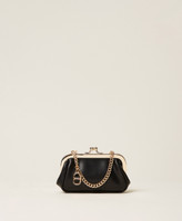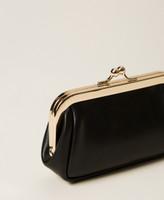 Smooth faux calfskin leather coin holder with Oval T charm. Snap closure and chain with carabiner that can be attached to a bag.