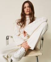 Colour block leather trainers with zip and printed logo on the side, rubber sole.