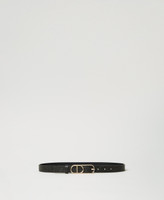 Low waist cracked leather belt made in Italy with new elongated Oval T buckle, pin fastening.