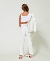 - 91% polyester 9% elastane. Material 2: 100% polyester. Belt: 91% polyester 9% elastane