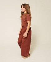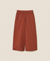 Girls' cropped trousers made from stretch cotton poplin with elasticated waist, slant pockets, wide fit.