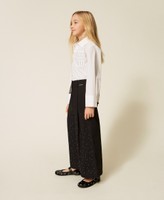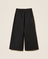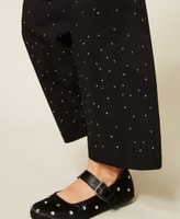 Girls' cropped stretch cotton poplin trousers with studs that increase towards the hem. Belt loops, logo plate, zip and button fastening, front pleats, slant pockets, wide fit.