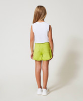 Girls' jersey cropped top with print and rhinestone and Oval T appliqués, sleeveless, fitted.