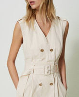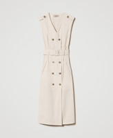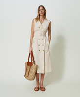 Midi shirt dress made from cotton poplin with double-breasted closure and logo buttons, V neck, frog fasteners at the shoulder, coordinated belt.