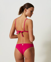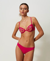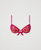 Padded push-up bikini top with removable cups, embroidered paisley pattern with sequins and tiny corals.