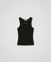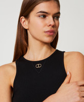 Ribbed cotton jersey top with Oval T logo plate with rhinestones on the front, round halter neck, fitted.