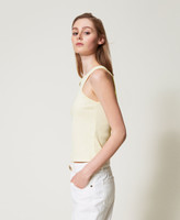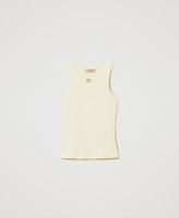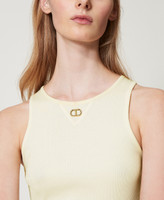 Ribbed cotton jersey top with Oval T logo plate with rhinestones on the front, round halter neck, fitted.