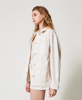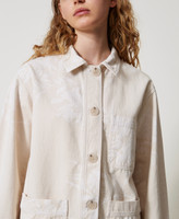 Jacket in cotton bull with a floral print, an exclusive Twinset design. Featuring a shirt collar, tonal button fastening, long sleeves, buttoned cuffs, front patch pockets, Oval T logo tab on the back and a wide fit.