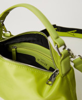 Medium capacity for this hobo bag made from light nylon with and tonal macro ‘A’ silkscreen print. Zip closure, adjustable shoulder handle, removable two-tone jacquard logo strap, zip closure. Inner lining. Match it with 24/7 outfits.