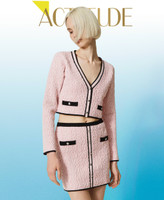 Actitude collection jacquard miniskirt with embossed cable knit, contrasting trim, decorative metal buttons.
