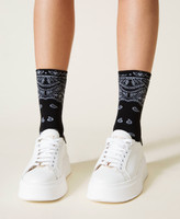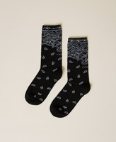 Jacquard socks with bandanna pattern and contrasting jacquard logo.
