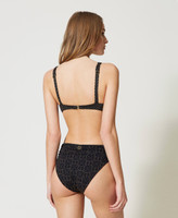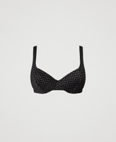 Jacquard underwire bikini top with lurex chevron pattern, adjustable shoulder straps, hook closure on the back.