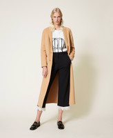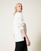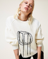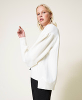 Wool blend jumper with brushed fabric sleeves, gathered yoke on the back, hand-embroidered logo.