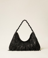 Large 'Liliane' hobo bag in soft woven leather with hand-knotted fringes on the front panel. Zip closure, twisted tubular shoulder strap, lining.