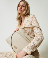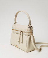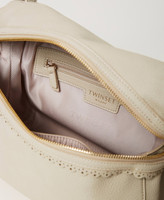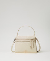 Large leather-like ‘Cécile’ top handle bag with padded on-shoulder handle, dual cursor zip opening with openwork scalloped finish and removable shoulder strap.