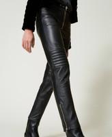 Fairfax' trousers made in Italy from leather that has undergone a double coating treatment. Seams on the knees, visible metal zip fastening, removable matching belt with metal buckle, slant pockets on the sides and welt pockets at the rear, zip at the hem, slim cut.