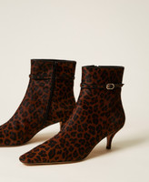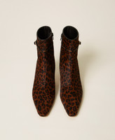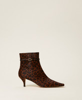 Leather ankle boots with animal print, ankle strap, tapered toe, concealed zip fastening and tunit sole.