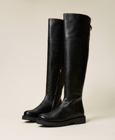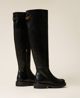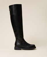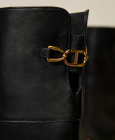Calf leather riding boots with Oval T logo clasp detail on the back, inner zip closure, rubber sole.