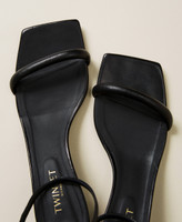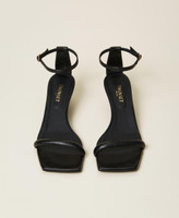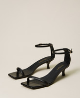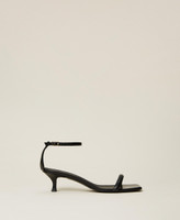 Nude-effect leather kitten heel sandals with ankle strap closure, leather heel and sole.