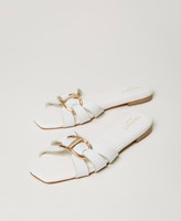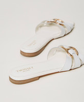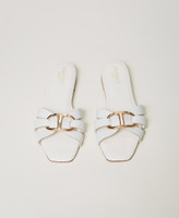 Flat elegance that elevates your style in a flash. Choose these leather slides with metal Oval T logo and tunit sole. Perfect any day, they will complete your formal looks in style too.