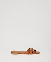 Flat elegance that elevates your style in a flash. Choose these leather slides with metal Oval T logo and tunit sole. Perfect any day, they will complete your formal looks in style too.
