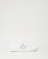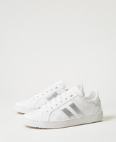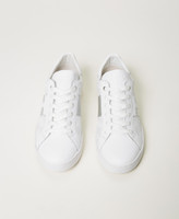 Leather trainers with laminated embossed logo, lace-up closure and rubber sole.