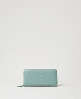 Zip around leather wallet with embossed Oval T logo and double inner compartment with zip.
