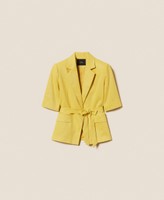 - 69% cotton 20% linen 11% metallic polyester. Lining: 100% cotton. Belt: 69% cotton 20% linen 11% metallic polyester