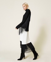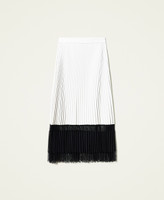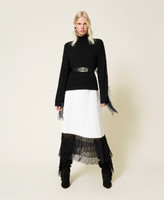 Light coated fabric long skirt with sun pleats and georgette and lace band at the hem.