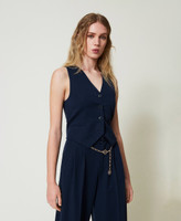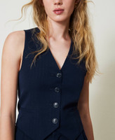 - 80% polyester 15% viscose 4% elastane 1% metallic polyester. Lining: 100% polyester