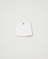 Stretch Milano stitch miniskirt with wrap-around effect, belt with metal Oval T logo buckle, side zip.