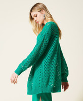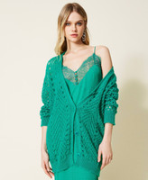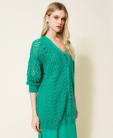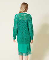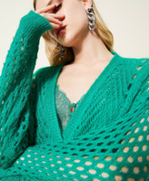 Long mohair blend cardigan with mixed openwork and mesh, long sleeves, loose fitting.