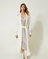 Actitude collection Limited Edition maxi cardigan with cable knit and placed thread-embroideries, matching belt.