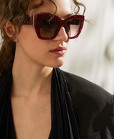 Acetate oversized square sunglasses with opalescent effect, logo inlay on the temples. The glasses come with a matching logo case.