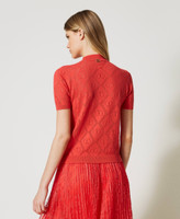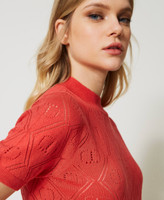 Cotton blend jumper with openwork Oval T monogram, roller neck, short sleeves.