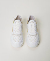 Actitude collection platform trainers with all over logo on the sole, laminated inserts, high rubber sole.